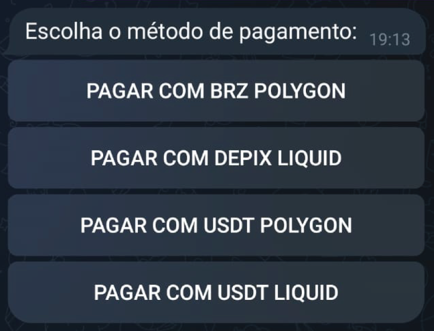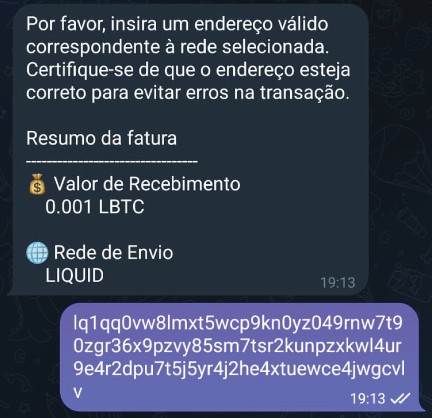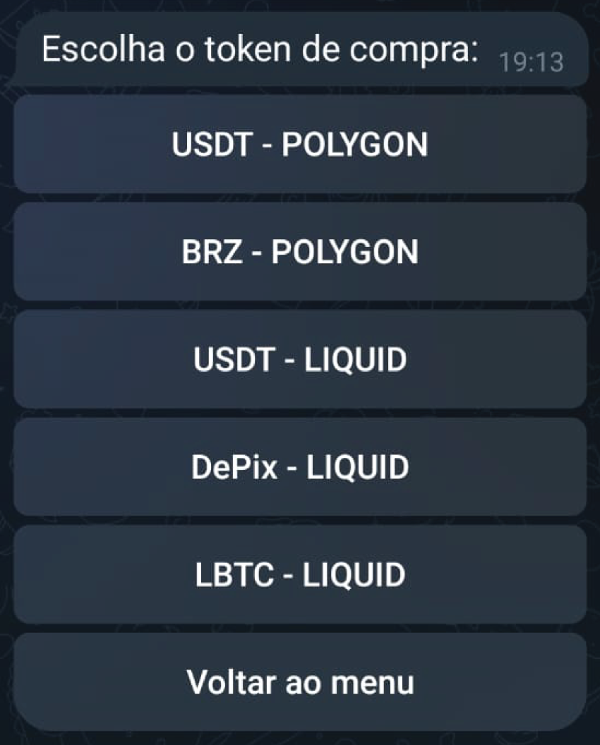BTC, LBTC, DePIX, BRZ, USDT e muito mais.